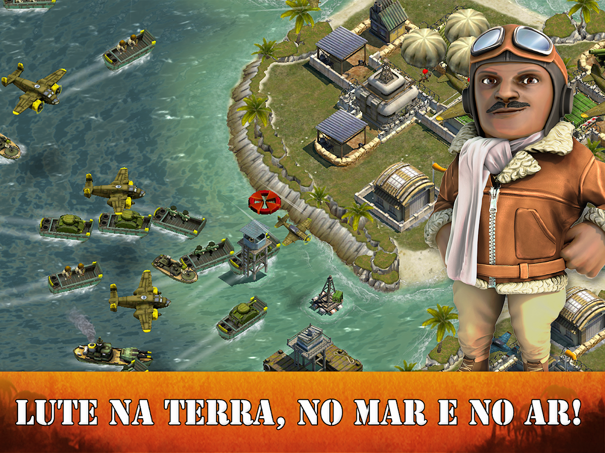 que é pura ação. Controle forças aéreas, navais e terrestres, monte suas